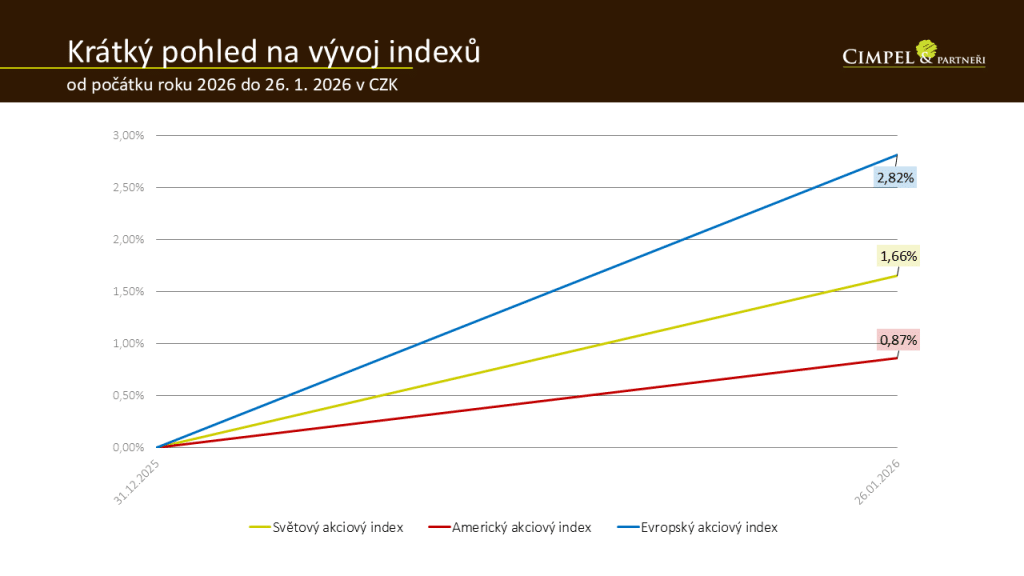 Jiří: Evropa růstem předbíhá Ameriku, pád zlata i bitcoinu a také oslabení amerického dolaru. To a mnohem více se dozvíte v dnešních Aktualitách z finančních trhů za první měsíc roku 2026. Moje jméno je Jiří Cimpel a se mnou je jako vždy náš analytik a partner ve firmě Dan Majstorović.