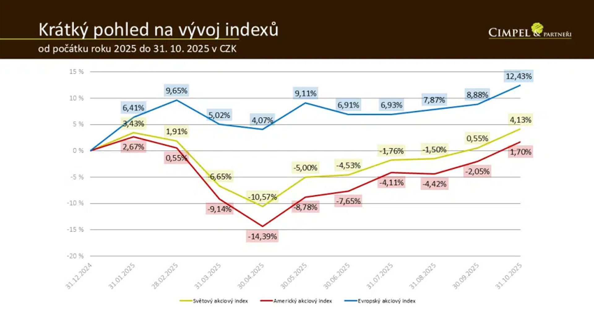Dan: To je zajímavá kombinace. Nemají schválený rozpočet, to je ten shutdown. V konečném důsledku to znamená, že řada běžných úřadů a institucí nefunguje. Fungují jen ty nezbytně nutné, jako je policie, armáda, zdravotnictví. Řada ostatních je na nucené dovolené. A třeba i americká centrální banka vlastně jede naslepo, protože statistický úřad je zavřený a nedodává data, a oni musí být opatrní. Přestože již snížili úrokové sazby, jsou nyní opatrní, když říkají, že do konce letošního roku už se sazby možná znovu nesníží.