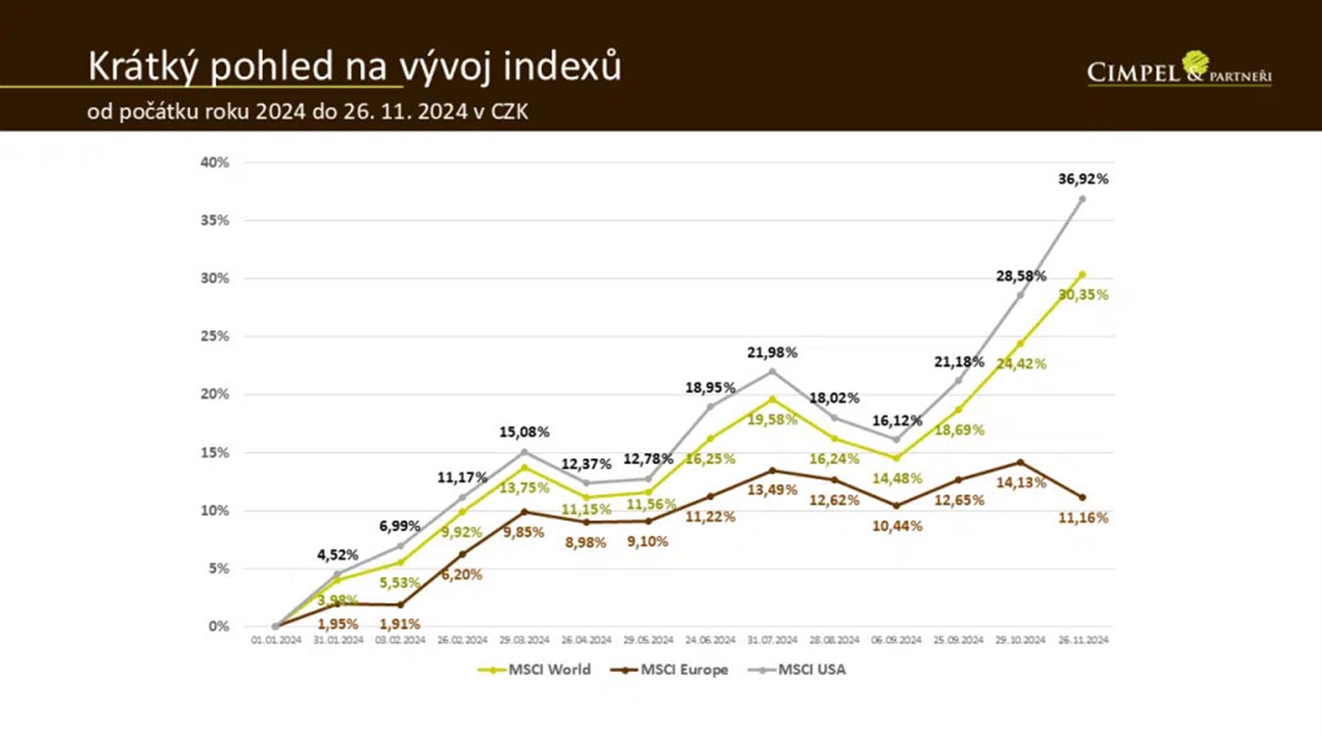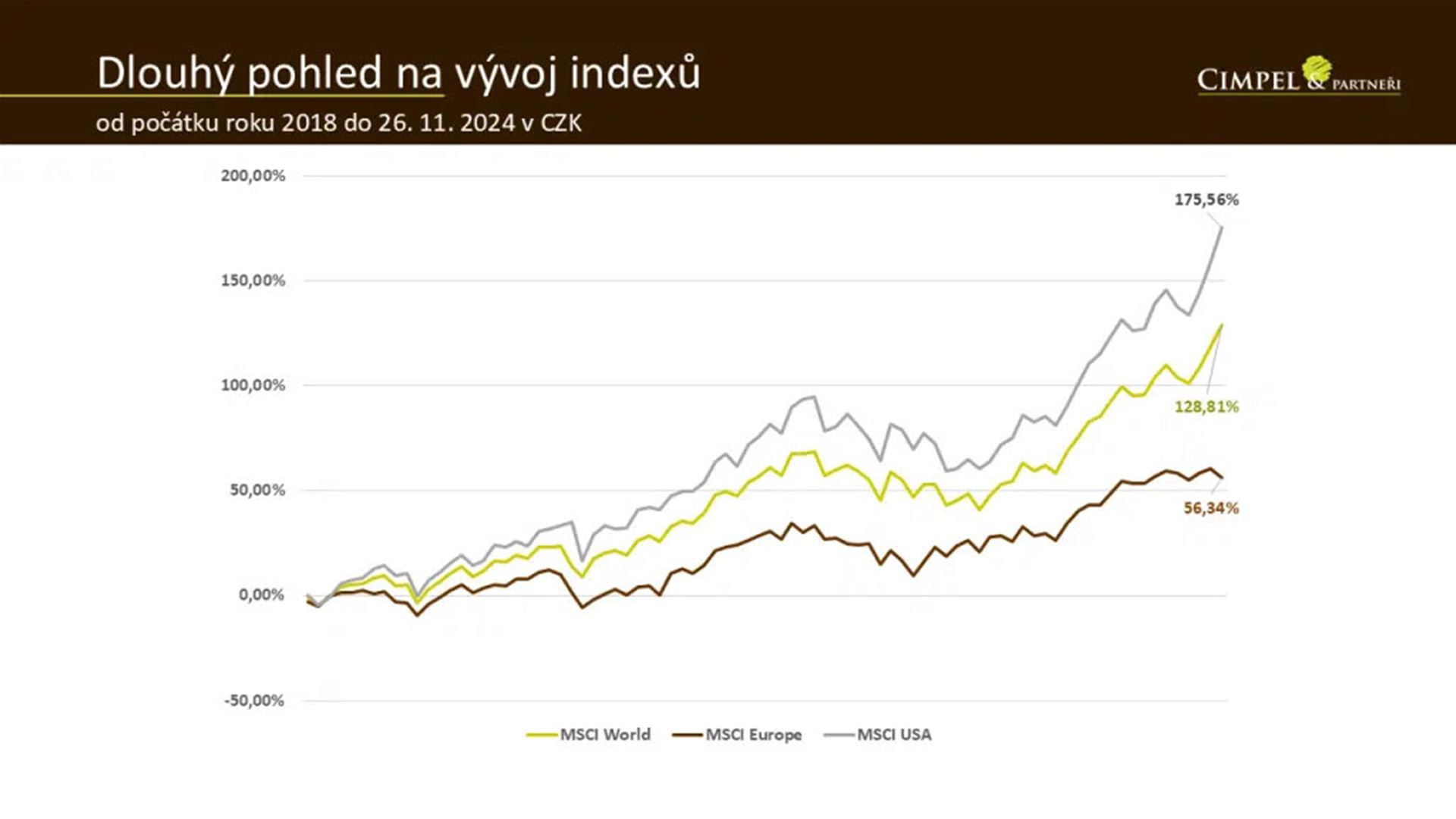 Co se dělo na trzích, jste viděli před chviličkou. Viděli jsme, že americké akcie citelně posílily, evropské akcie bohužel citelně oslabily. To byl globální pohled na S&P 500 versus evropský akciový index.