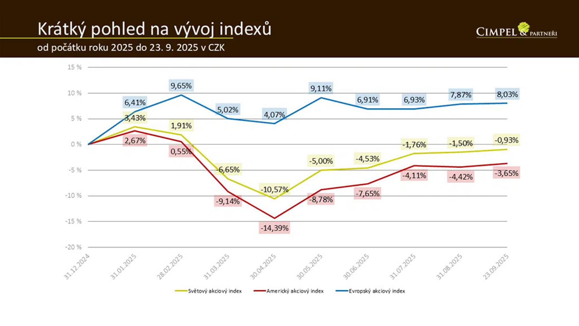 Jiří: To si myslím, že je hezká poznámka na závěr. Uvědomit si, že i když se od začátku roku na amerických pozicích díváte pravděpodobně pořád spíš na mínus nebo na nějakou červenou nulu, protože dolar skutečně kolem 15 % ubral, tak vám to dává příležitost. Když jako investoři dokupujete, tak dokupujete dolar za mnohem lepší cenu. Oproti Američanům máme při nástupu do pozic alespoň malou výhodu.