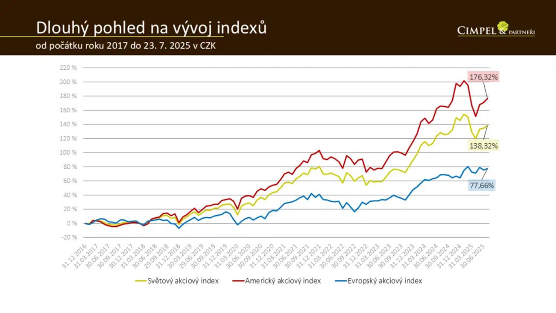 Je to tedy určitý paradox, kdy vidíme S&P 500 na maximu, vidíme potenciální rizika, která tato protekcionistická opatření mohou přinést, ale zatím se do ekonomiky nepromítají. Mohou se promítnout v budoucnu, můžeme vidět i pokles americké ekonomiky, ale určitě to není z našeho pohledu něco, co by bylo kritické, abychom měli strach investovat do akciového trhu. Naopak to může přinést i příležitosti, že koupíme ve slevě. I z dnešního pohledu stále díky silné koruně můžeme vstupovat do zahraničních aktiv s určitou slevou.