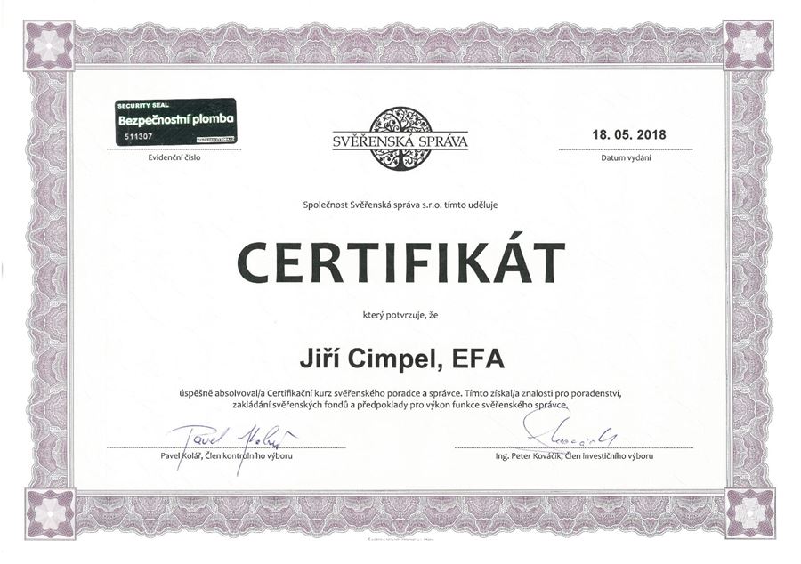 Certifikace EFP a EFA představují vrchol evropského uznání ve finančním plánování. Jsou zárukou špičkové odbornosti i nezávislého přístupu k vašim financím. V Česku je jako první získali Jan a Jiří Cimpelovi.